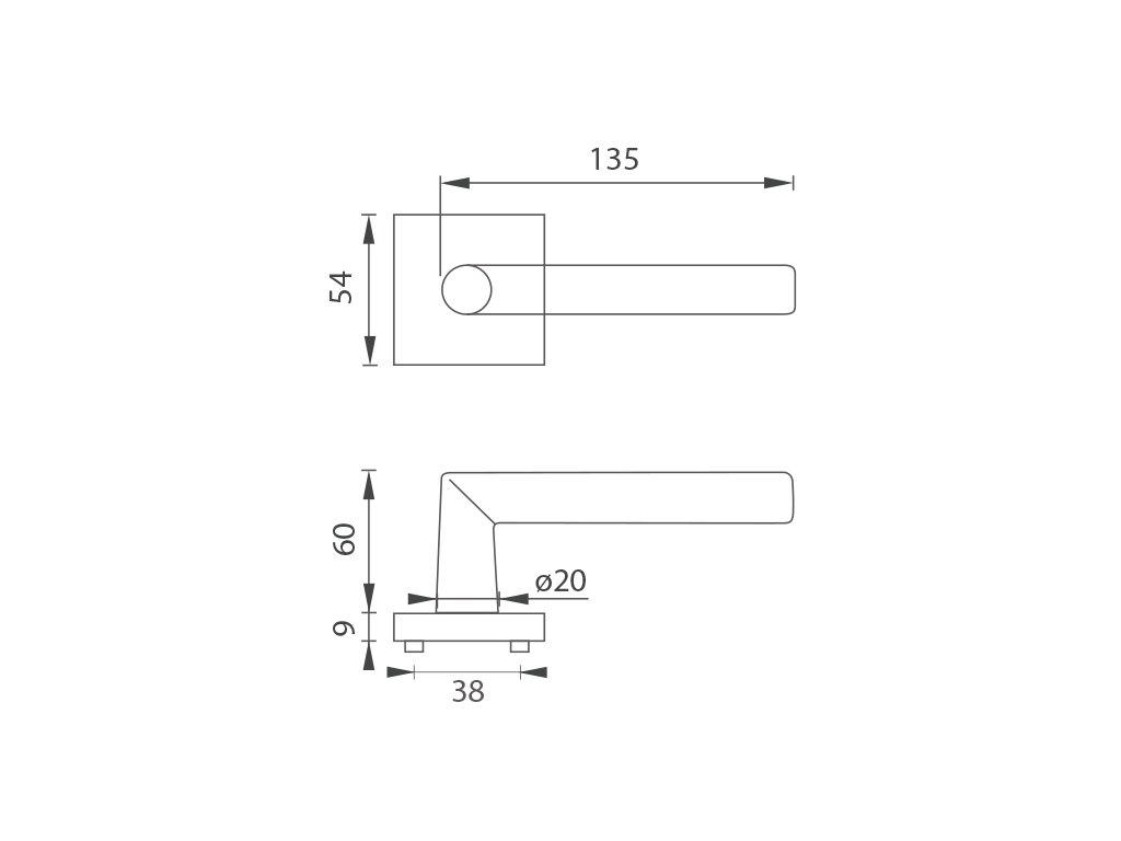 Rozetová kľučka na interiérové dvere s hranatou rozetou je vyrobená z vysokokvalitnej nehrdzavejúcej ocele, známej ako nerez a je povrchovo upravená. Rozeta má rozmery 54 mm x 54 mm a hrúbku 9 mm. Je farebne stabilná a odolná voči opotrebeniu. Kovanie je testované podľa normy ČSN EN 1906:2012 na 200 000 cyklov.