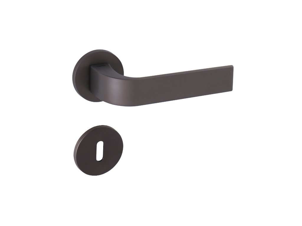 Rozetová kľučka na interiérové dvere s okrúhlou rozetou je vyrobená z materiálov vysokej kvality - zamak a je povrchovo upravená. Rozeta má priemer 52 mm a hrúbku len 5 mm.