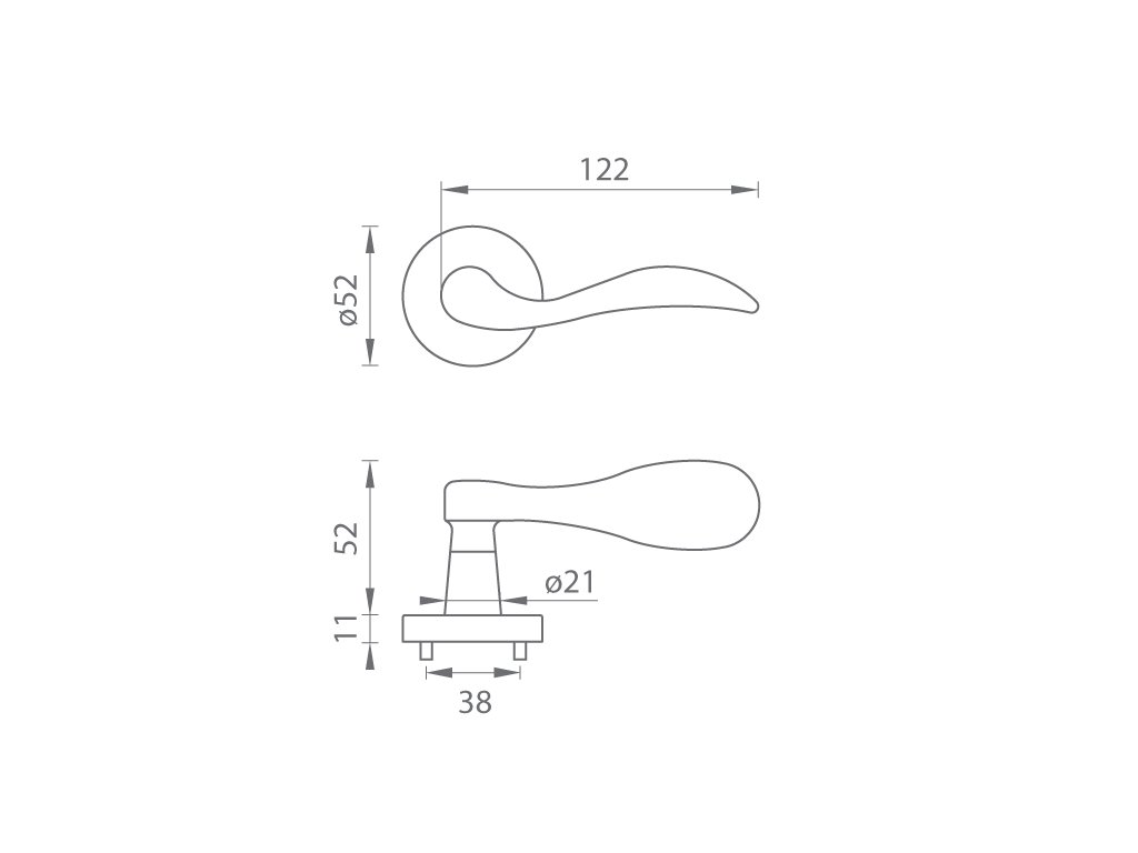 Rozetová kľučka na interiérové dvere s okrúhlou rozetou je vyrobená z materiálov vysokej kvality - mosadz a je povrchovo upravená. Rozeta má priemer 52 mm a štandardnú hrúbku 11 mm.